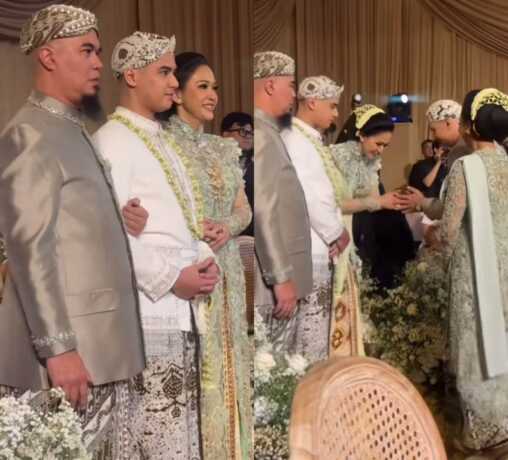 Ahmad Dhani dan Maia Estianty terlihat mendampingi Al Ghazali menuju prosesi akad nikah, Senin (16/6/2025) di hotel The St. Regis, Jakarta Selatan.